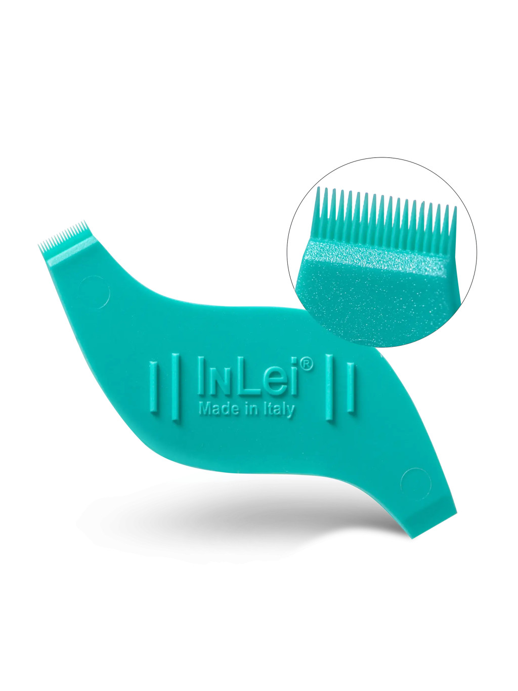 Az InLei HELPER fésű (zöld), 18 foggal és speciális kialakítású, ergonomikus formájával leegyszerűsíti a szálak precíz felfésülését mind a jobb, mind a bal oldalon, az orrot könnyedén kikerülve.